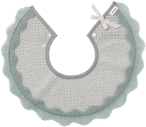 まるい形のスタイは、赤ちゃんのよだれで汚れてしまっても、くるりと回して使い続けることができます。レースや蝶ネクタイ風リボンなど細部までこだわったおしゃれなデザインは、結婚式などのフォーマルな場面にもぴったりです。