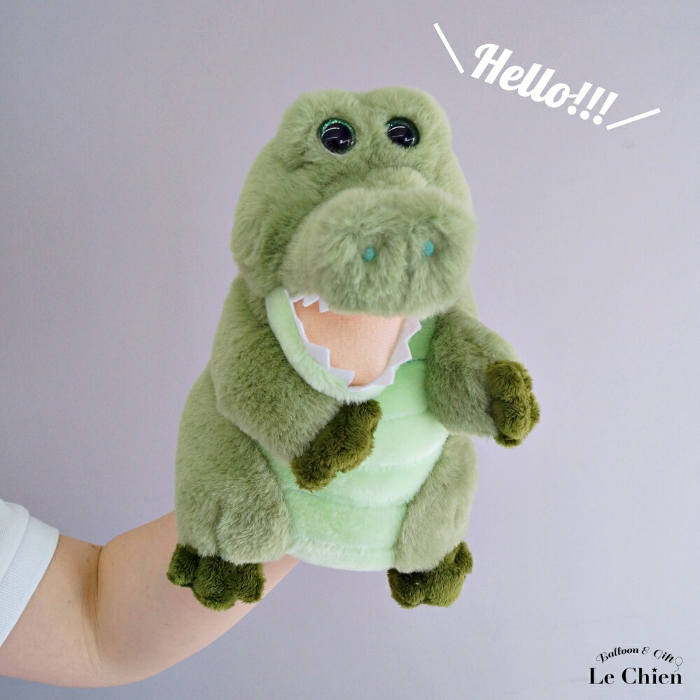 ぬいぐるみメーカーのテイクオフが手掛けるハンドパペットは、パンダやトイプードルといったおなじみの動物からヒョウや像といったサバンナの動物たち、今は絶滅した恐竜など、さまざまな種類がそろいます。ほとんどが綿入りで自立して座らせられるので、ぬいぐるみとしても遊べますよ。