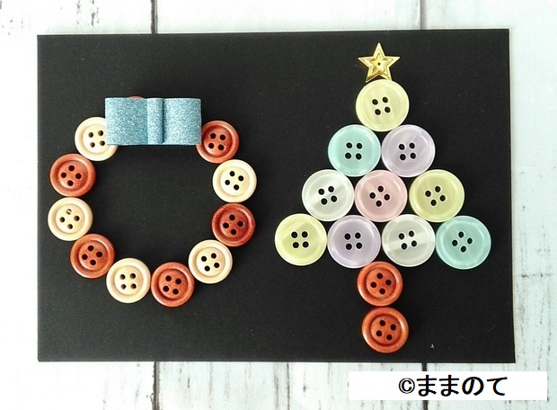ボタンを使用したクリスマスカードのアイデアをご紹介します。自宅にあるボタンを使用したり、クリスマス仕様のボタンを100均などで購入したりしても良いでしょう。