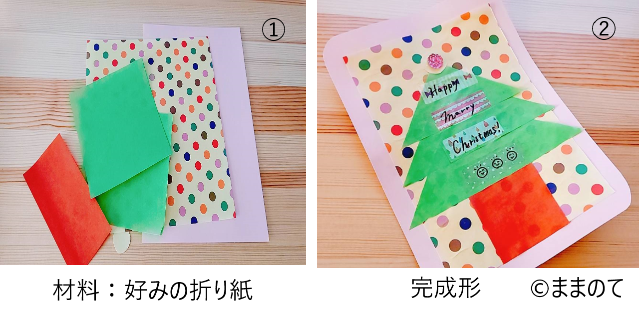 1.ママやパパが折り紙でクリスマスにちなんだモチーフを折ったり作ったりする
