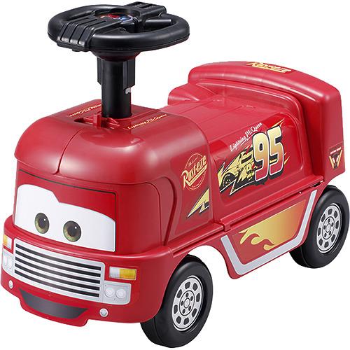 カーズのレーシングトレーラーは、子どもが乗って遊べるおもちゃです。それだけではなく、胴体を開くとトミカを走らせるミニサーキットにもなる優れものです。後部にはミニカーを4台収納できるので、小さな子どもでも簡単に片付けられますよ。
