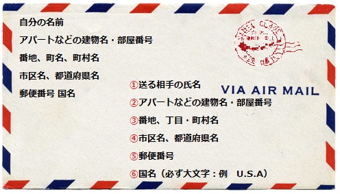 1.氏名(差出人欄には「From」、受取人欄には「To」を記入)