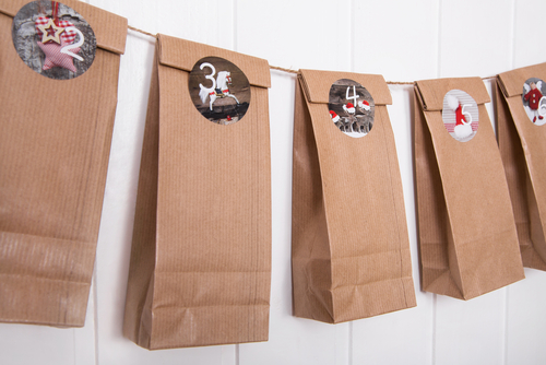 クリスマスプレゼントやお菓子を紙袋に入れて、ガーランドに見立てて吊り下げると楽しいゲームができます。紙袋にさまざまなお菓子を入れたり、「当たり」と「はずれ」を用意たりして、親子でゲーム感覚でクリスマスプレゼントを交換しても良いですね。