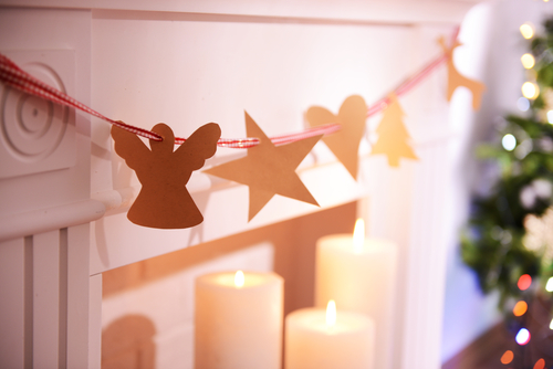 「Mary Christmas」の文字やサンタクロース、星や靴下などのクリスマスオーナメントがついたガーランドがおすすめです。壁にかけても良いですし、カウンターの上にスペースがあるなら、カウンターの底面に吊り下げるように装飾しても良いですね。