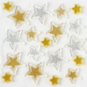 グミデコ(ジェルジェム)バッグは、窓に貼ることで天にきらめく星の風景を演出できます。ゴールドとシルバーの雪の結晶が大・小サイズの組み合わせで入っているので、お好みのレイアウトで窓を彩ることができるでしょう。