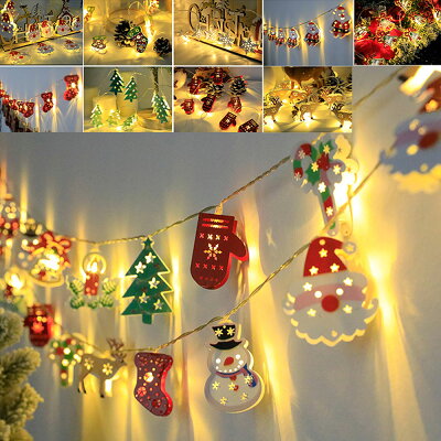 サンタやもみの木などクリスマスにちなんだかわいいモチーフが連なるLEDライトは、壁やクリスマスツリーを華やかに彩るアイテムです。リモコン操作でON/OFFの切り替えができ、明るさや点灯パターンも調節できるので、パーティーの進行に合わせて盛り上がりを演出できます。