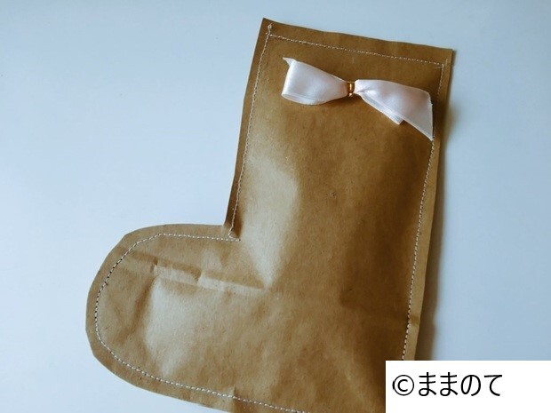 5.クラフト紙と針と糸でクリスマスブーツのラッピング