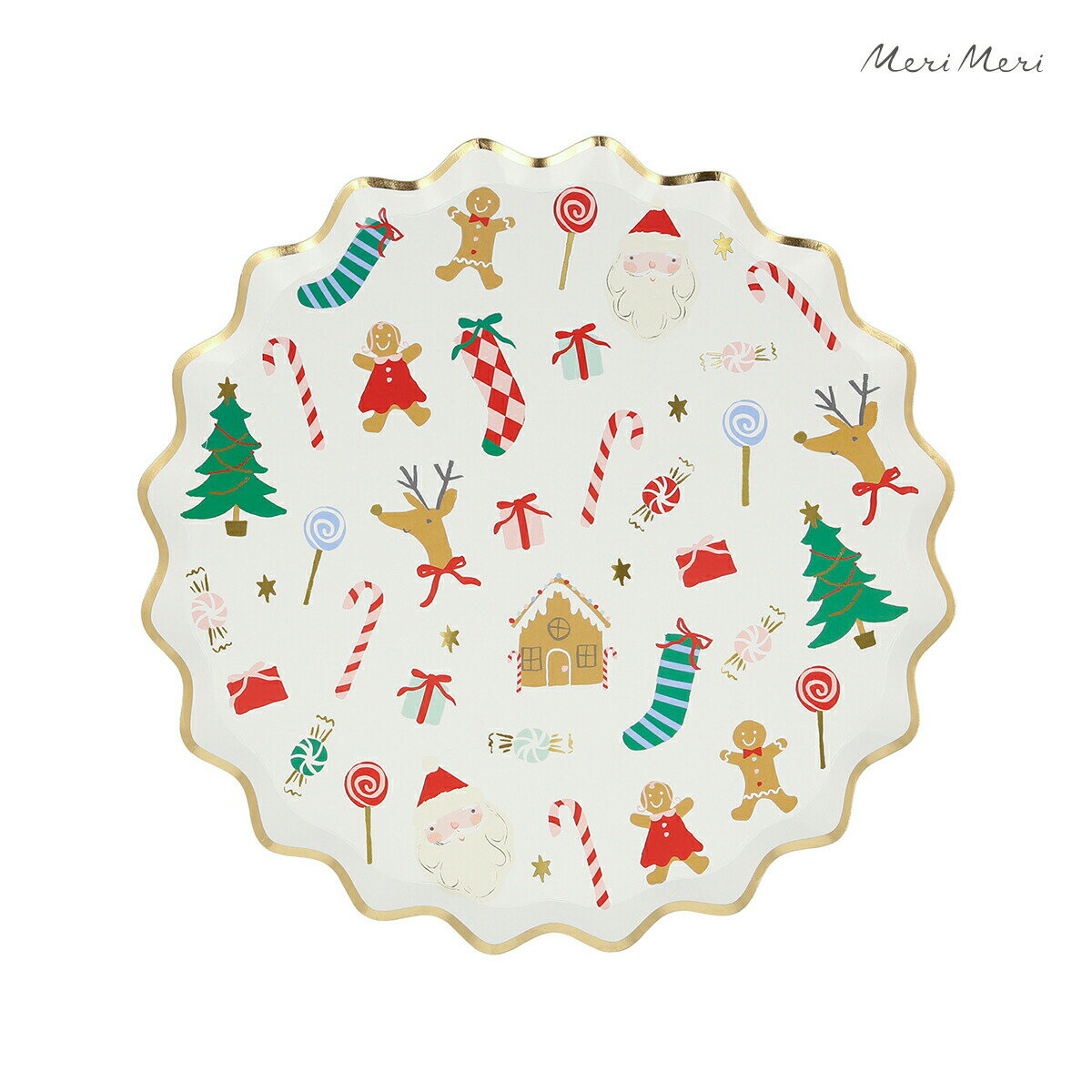 子どもがなんでも手を伸ばしてしまって食卓から目が離せない場合は、大人向けの紙皿もあります。メタリックゴールドの枠にクリスマスアイテムが描かれている紙皿は、それだけでクリスマスの華やかな雰囲気をかもし出してくれます。紙皿なら、子どもがいたずらをしても安心して食事を進めることができますよ。