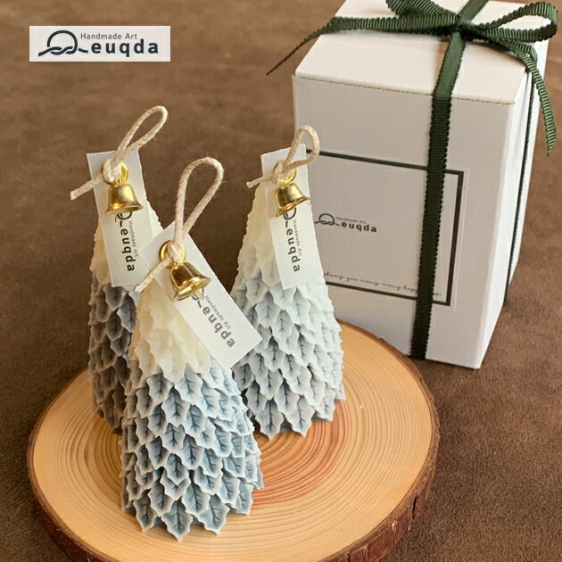 白と緑のグラデーションが美しいクリスマスツリーのキャンドルは、割れやヒビを防ぐために蜜蝋ワックスと100%天然植物性のソイワックスをブレンドし、耐久性をアップしています。デザイン性も高く、クリスマスシーズンだけではなくインテリアとして長く飾りたくなりますよ。