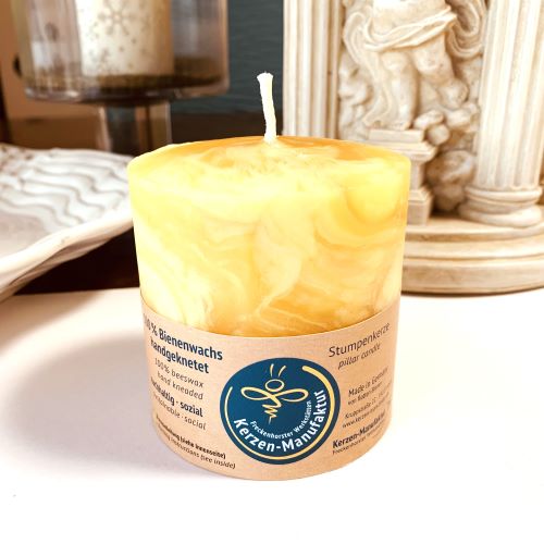 ドイツのブランド「ボンフロッテビーン」の蜜蝋キャンドルです。黄色とオレンジのマーブル模様が美しい天然の蜜蝋キャンドルは、火をともすとはちみつのほのかに甘い香りがやさしく漂います。燃焼時間は30時間と長いので、一般的なキャンドルよりも長期間楽しめます。