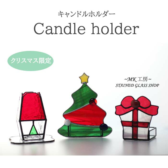 アメリカやヨーロッパなどでつくられたガラスをもとに、一つひとつ工房でつくられたステンドグラスのキャンドルホルダーです。モチーフは、ハウス、ツリー、プレゼントの3つ。キャンドルを置くガラスを通した柔らかな光が広がります。
