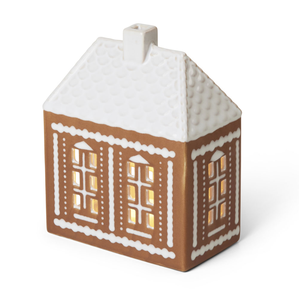 クリスマスのお菓子、ジンジャーブレッドをモチーフにしたキャンドルホルダーです。クッキー生地を再現したブラウンのマットな色調の壁面と、雪が積もったような白い屋根がクリスマスらしさを引き立てます。シリーズでそろえて飾るのもおすすめです。