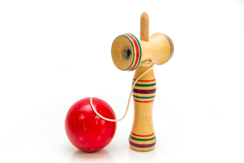 十字型の剣に穴の開いた玉を指して遊ぶ、けん玉。バランス感覚を必要とし、練習すれば上手になる遊びなので、子どもの成長とともに技が増えていくのではないでしょうか。さまざまな技があるので、家族で難しい技に挑戦していくのも楽しそうですね。