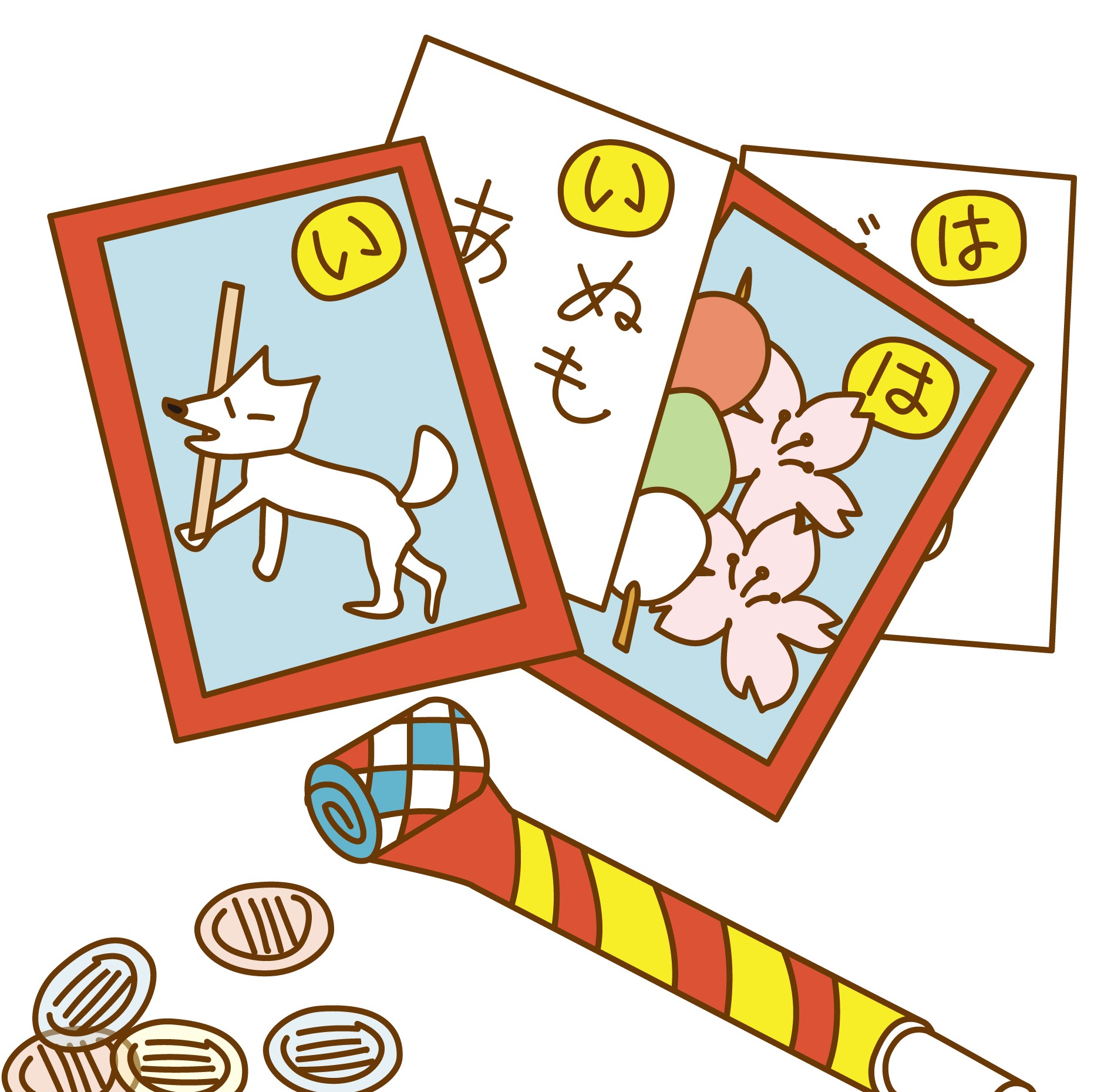かるたは、江戸時代後期に、子どもがひらがなやことわざや生活に必要な知恵を遊びながら覚えられるようにと、一種の教材として考え出されました。かるたには種類がさまざまありますが、「いろはがるた」は、「読み札」にはことわざが書かれ、「絵札」には読み札のイラストがセットになっています。楽しく遊びながら、自然とことわざも覚えられるのはうれしいですね。