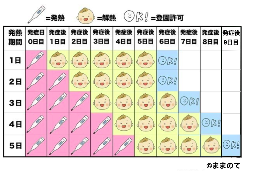出席停止期間を早見表でチェック!登園許可はいつ出る?