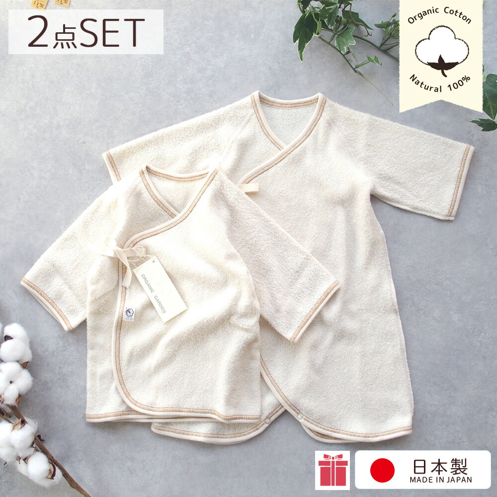 生まれたばかりの赤ちゃんの肌は、とても薄くデリケートです。化学肥料や農薬を使っていない、赤ちゃんの肌に優しい「オーガニックコットン」の肌着セットはいかがでしょうか。しっかりと厚みのあるふわふわのパイル地でつくられた短肌着1枚、コンビ肌着1枚がセットになっています。
