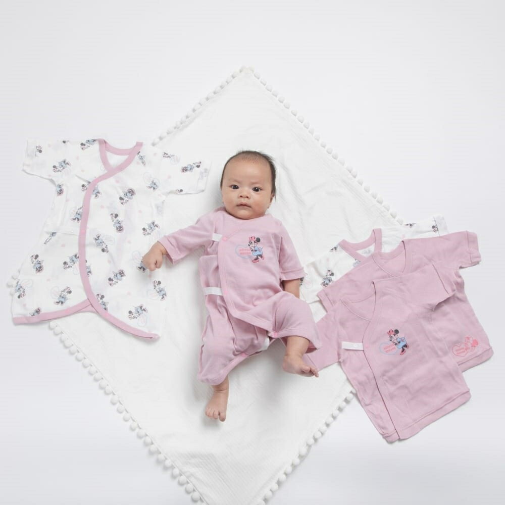 トイザらス・ベビーザらス限定の、かわいいミニーちゃんがプリントされた、女の子におすすめの肌着セットです。短肌着3枚、コンビ肌着2枚の5点セットになっています。