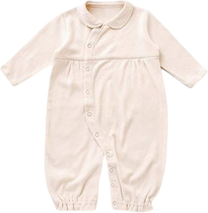 オーガニックコットン100%のニット生地で作られた、肌触りの良いツーウェイオールです。やや厚みのあるパターンメッシュ×スムース素材なので、季節の変わり目や秋冬におすすめです。丸襟付きのデザインは、お披露目会やおでかけ時に重宝します。