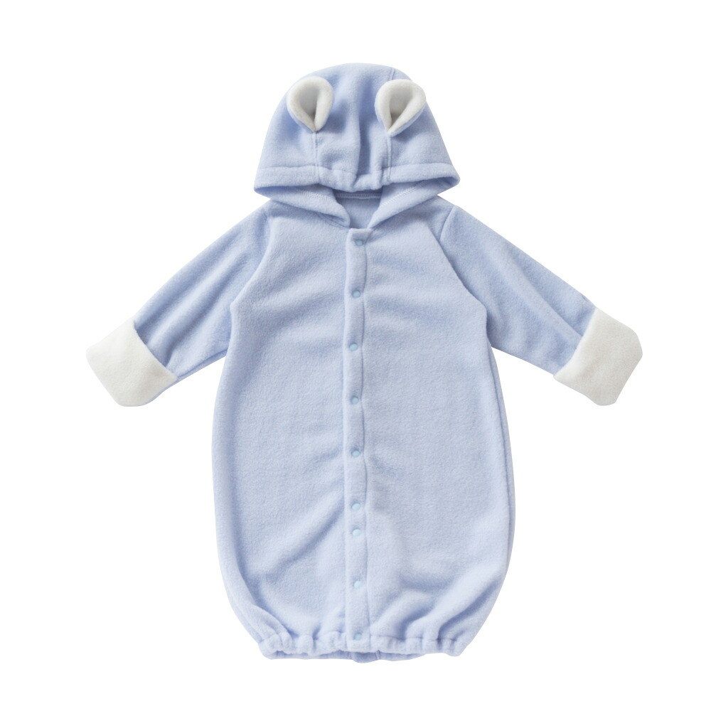 寒い冬にぴったりの、柔らかなフリース素材のツーウェイオールです。フードにはくま耳が付いたかわいいデザインです。アウターとして活用できるので、退院時やお披露目イベントにも活躍してくれます。