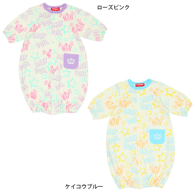 星柄と王冠柄がとてもかわいいツーウェイオールです。袖と裾口がきゅっとしぼられた丸みのあるデザインです。赤ちゃんのデリケートな肌にも優しい綿100%素材で、通気性・吸水性にも優れています。ポップでカラフルなので、プレゼントしても喜ばれそうです。