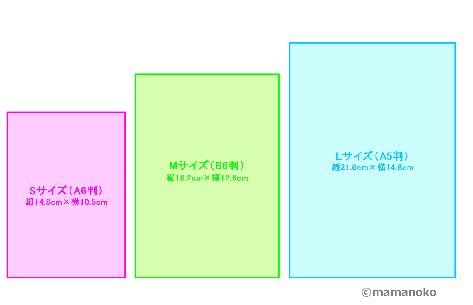 大きめのMサイズ(B6判)とLサイズ(A5判)もある