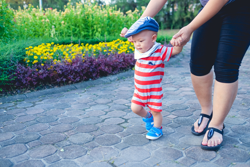 生後9ヶ月以降の赤ちゃんは活動範囲が広がるので、肌着とTシャツにズボンやスカートの組み合わせが基本です。立ったり歩いたりする赤ちゃんは動きを邪魔しないものなど、成長に合わせた服装を選びましょう。