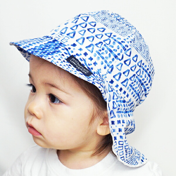 日焼け対策として、広めのつばと日よけカバーが付いたカラフルなキャップです。日本製にこだわった素材と製法で、キュートなデザインと豊富なカラーバリエーションが特徴です。