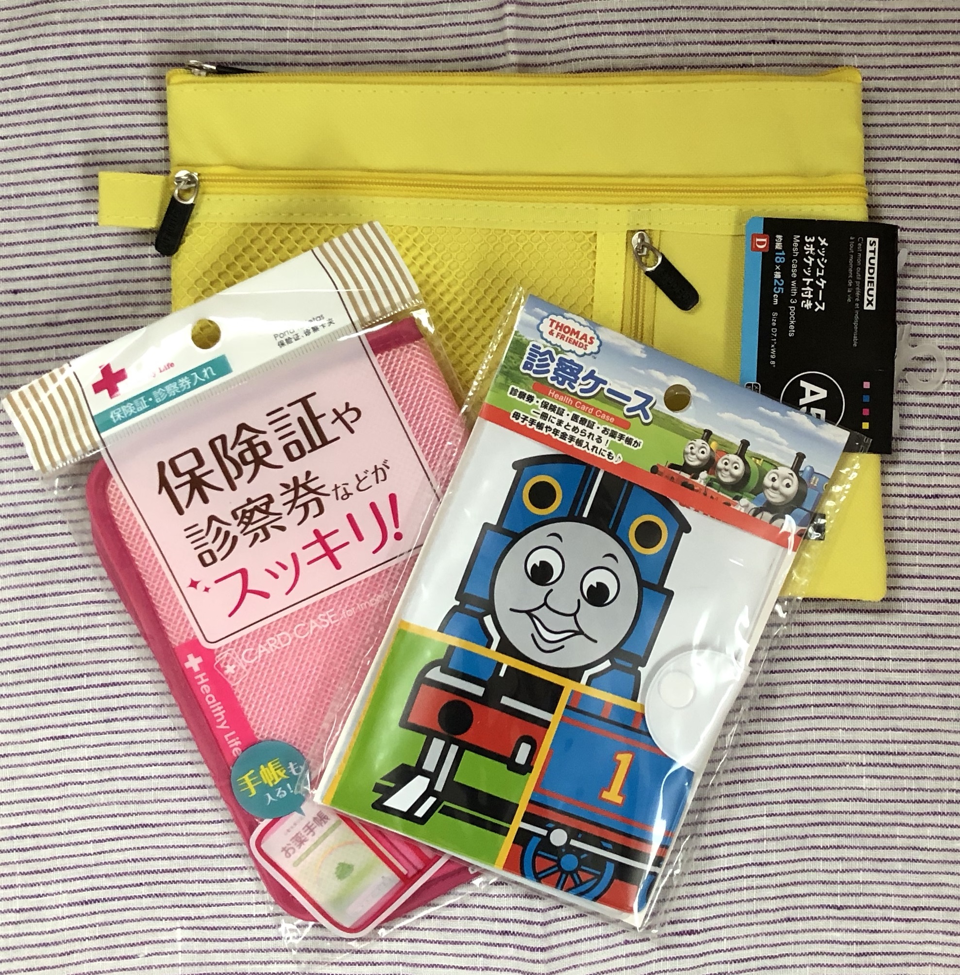 ブックタイプは取り外し可能なポーチ付き。ジャバラタイプにもファスナー付きポケットがありますよ。それぞれたっぷりのカードポケットがあり、きょうだいがふたり以上いても診察券や保険証がらくらく入る収納量です。