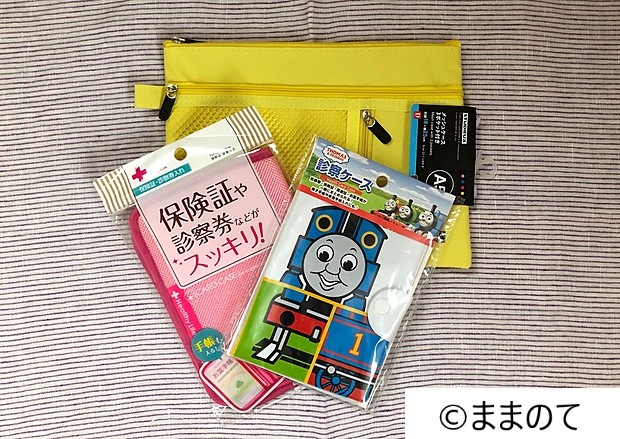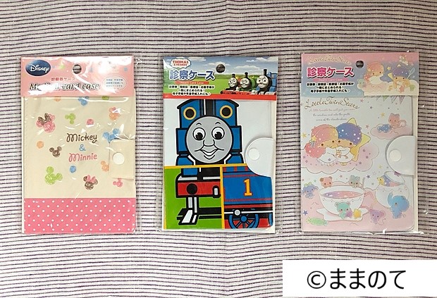 人気キャラがデザインされた「診察ケース」は、保険証、診察券、医療証、お薬手帳が一冊にすっきりまとめられる便利なケースで、Sサイズの母子手帳入れとしてもぴったりです。ディズニー(ミッキーやトイ・ストーリーなど)、サンリオ(ハローキティ、マイメロディなど)、トーマスなど子どもが喜ぶデザインが豊富ですよ。ダイソー、セリア、キャンドゥで購入できます。