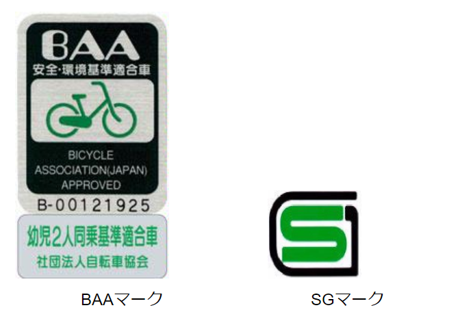 (BAAマーク下のシールは、幼児2人乗せ自転車の安全性認定基準に適合した製品に貼られる)