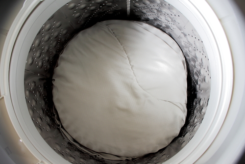 3.毛布を洗濯ネットに入れ、汚れが気になる側を下にして洗濯機に入れます。