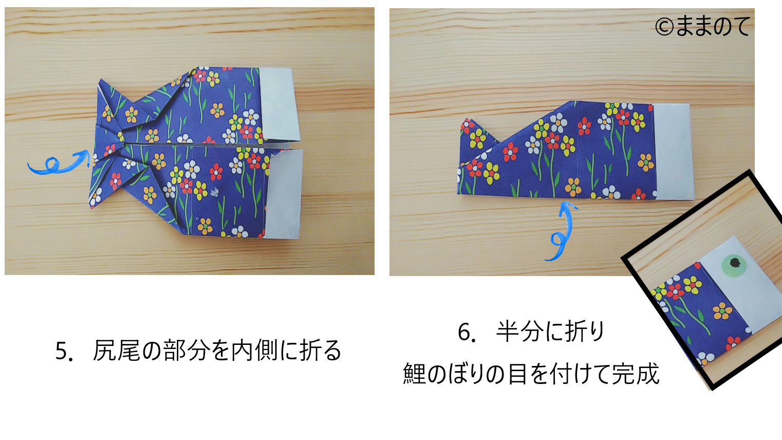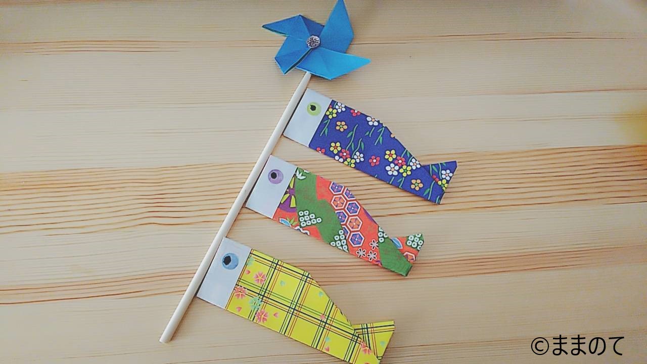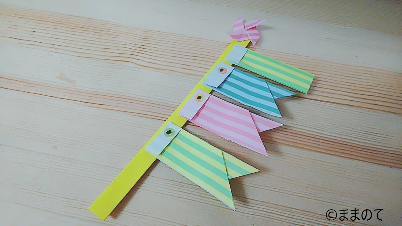 折り紙だけを使用したコンパクトな鯉のぼりの折り方です。ここでは一般的な折り紙を4等分にして、7.5✕7.5cmの折り紙を使用しています。
