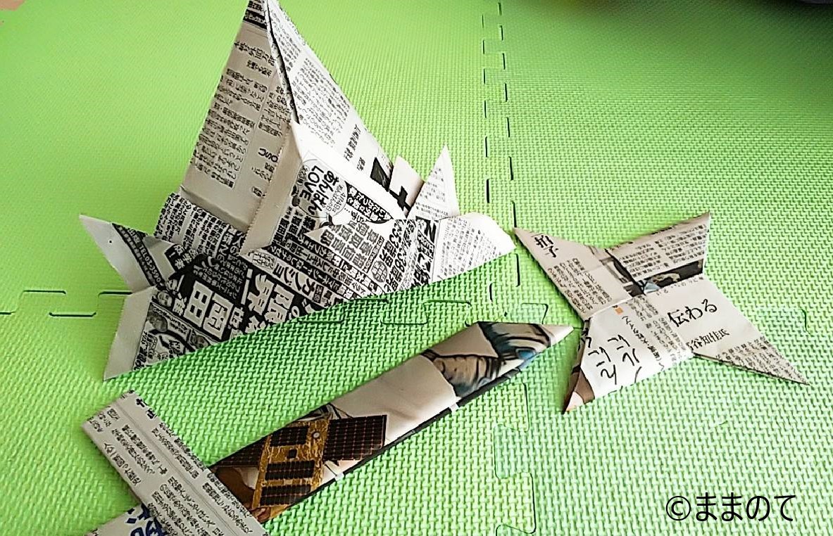 折り紙でスタンダードなかぶとの折り方をマスターしたら、頭にかぶれるかぶとを新聞紙で作ってみましょう。剣や手裏剣を作ってセットにすると子どもが喜ぶかもしれません。作る際は折り紙と同様、折り目をきちんと付けながら丁寧に折るのがポイントです。