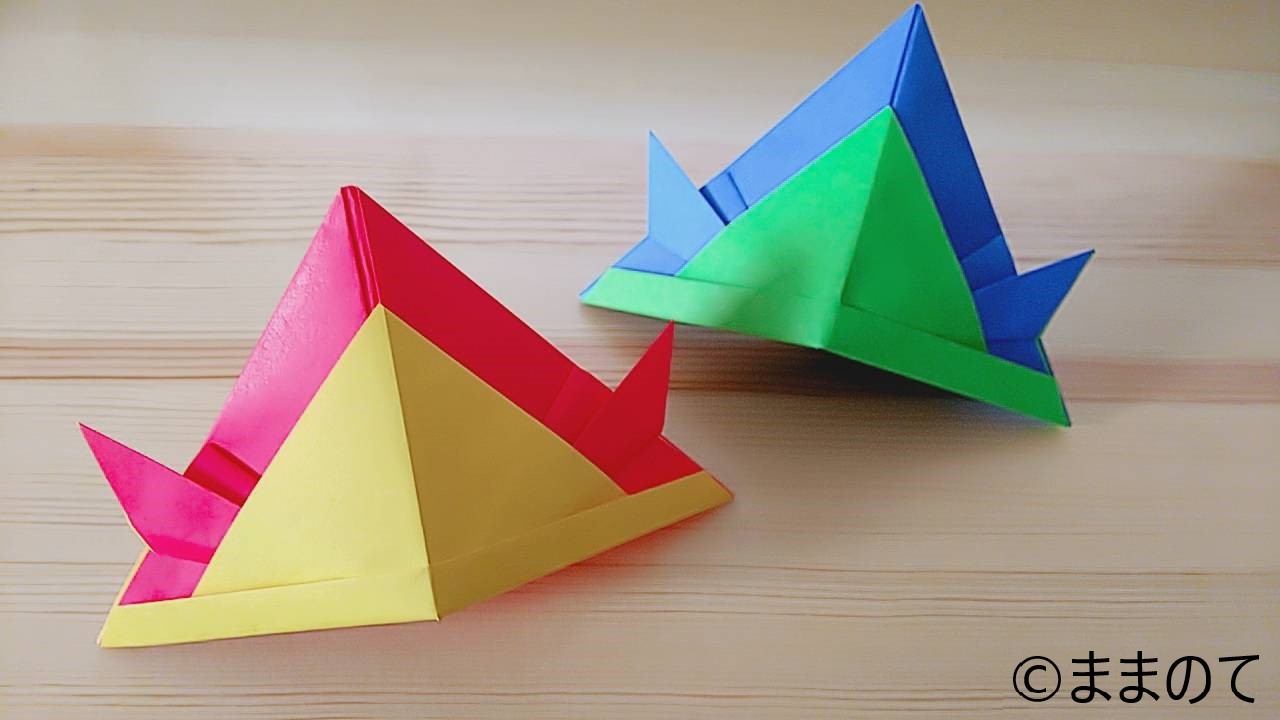 子どもと一緒に作りやすい立体的なかぶとの折り方です。両面折り紙や模様が付いた折り紙を使うと、色彩豊かなかぶとが作れますよ。