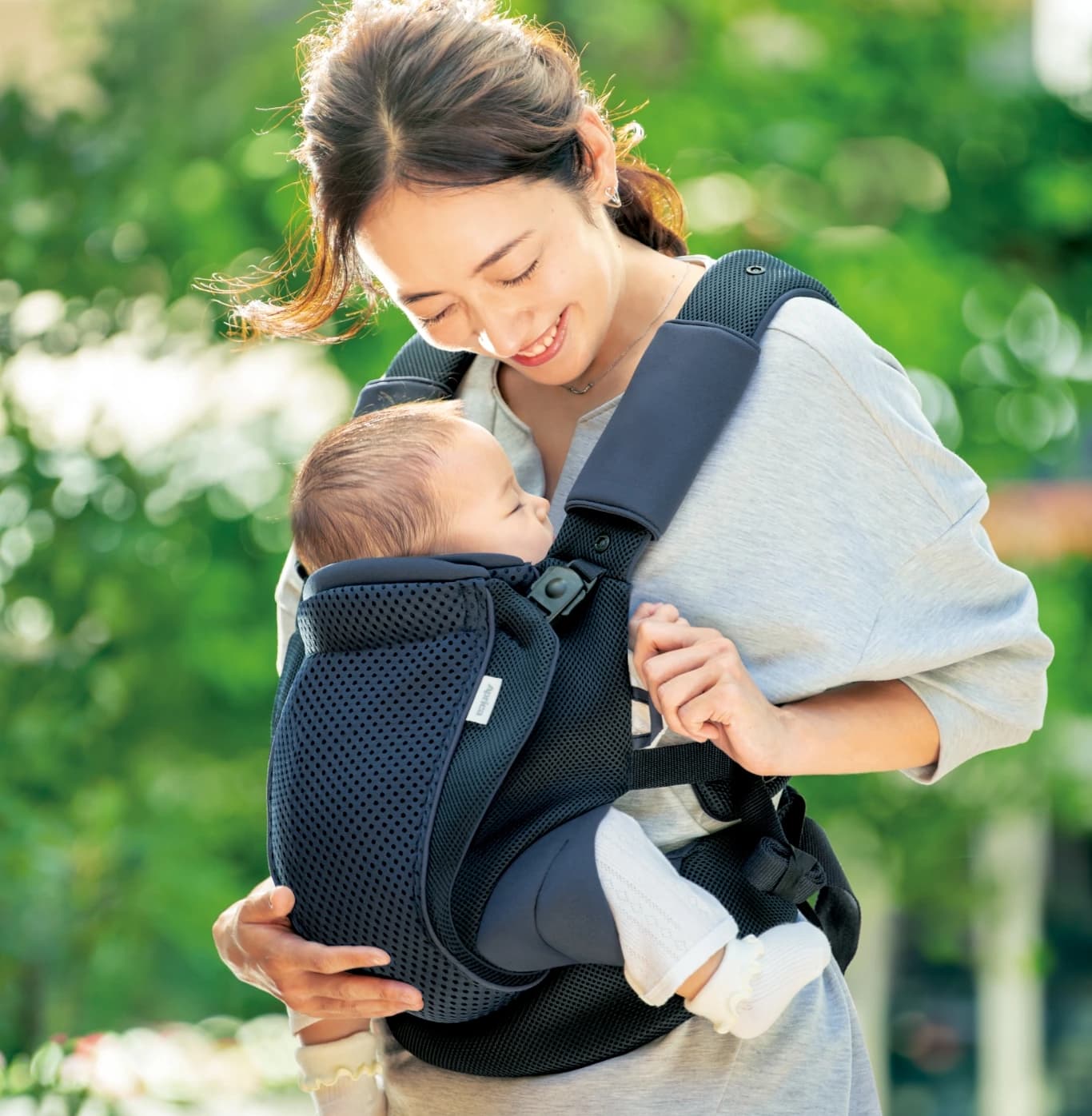 生地には介護用品にも使われる通気性、耐久性、クッション性にすぐれた立体構造メッシュを採用しました。独自のハンモックバンド構造と合わせ、赤ちゃんの体重を分散しママの負担を軽減します。