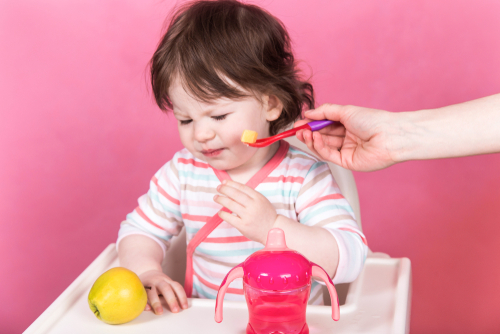 離乳食を飲み込んだことが確認できたら二口目を食べさせ、これを繰り返しましょう。スプーンを無理に口の中に押し込まないように気を付けてくださいね。