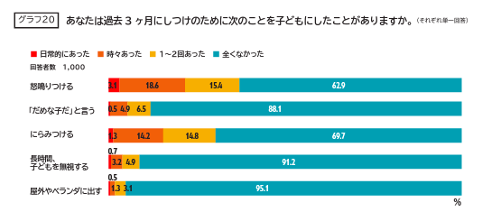 データ出典:公益社団法人 セーブ・ザ・チルドレン・ジャパン、「子どもに対するしつけのための体罰等の意識・実態調査結果報告書」、2021年3月(【グラフ1】 P6(回答者=20,000))
