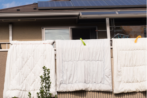 布団を取り込んだときに完全に乾いていなければ、室内の椅子の上にかけて乾燥させたり、布団乾燥機を使って乾燥させたりするのがおすすめです。羽毛は高い温度で乾燥させると劣化してしまうので、乾燥機には入れないほうが良いでしょう。