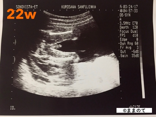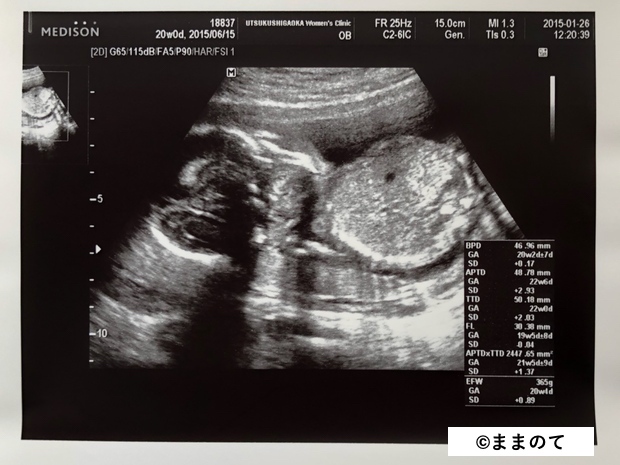 上のエコー写真では、股間からおちんちんが出ているのが見え、男の子だということがわかります。