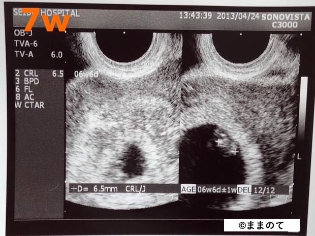 上の画像は、双子の赤ちゃんの妊娠7週のエコー写真です。
