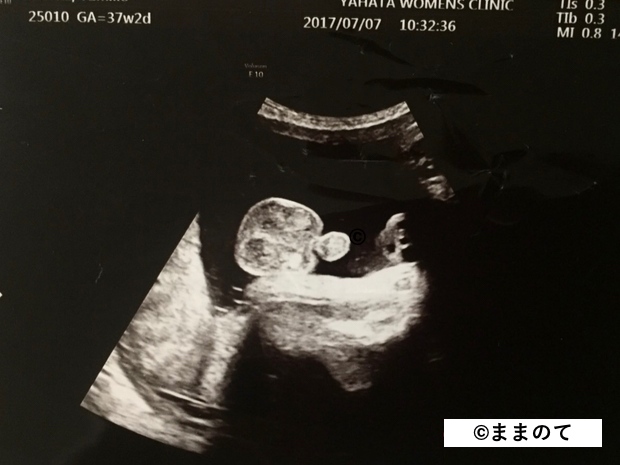 臨月となり、赤ちゃんはいつ生まれてもおかしくない身体に成長しています。エコー写真には存在感のある顔が写ることもありますよ。