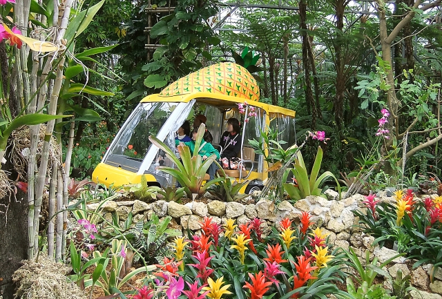 沖縄の代表的なトロピカルフルーツ、パイナップルを楽しんで学び、味わうテーマパークです。ジャングルのようなパーク内を「パイナップルトレイン」や「パイナップル号」に乗って移動できるので、子どもはきっと大喜びするでしょう。カフェではパイナップルを使った特別なスイーツが味わえます。