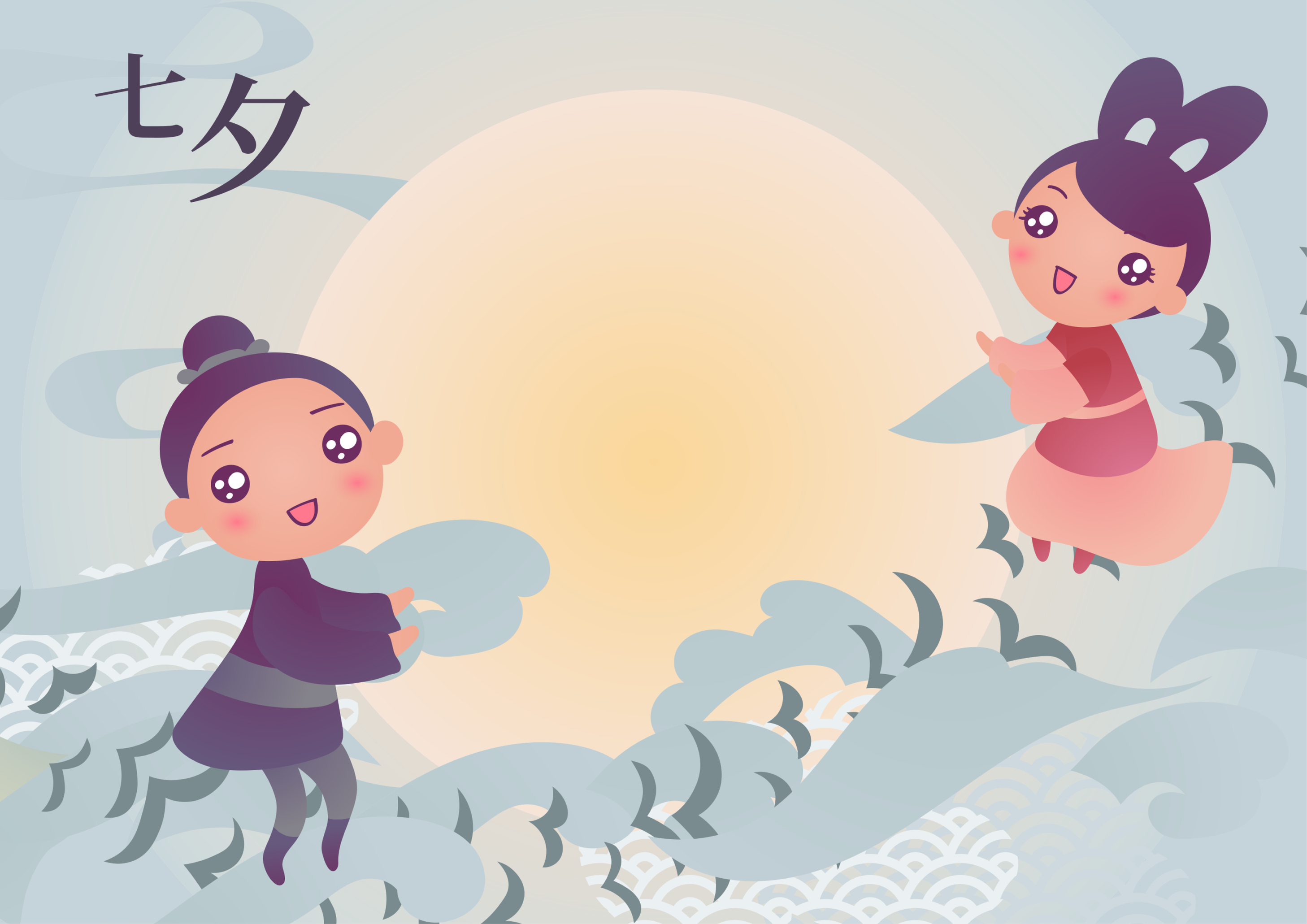 七夕伝説の始まりは、中国の殷芸(いんうん)が六朝(りくちょう)梁時代に著した「小説」の一節に由来しているとされています。夫婦となった織姫と彦星が遊び暮らし、仕事を疎かにしたため、神様に天の川の西と東に離されてしまう話です。