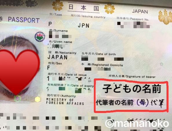 パスポートの申請書には本人が直筆でサインをする欄があります。赤ちゃんの場合は以下のようにパパやママが代理でサインすればOKです。