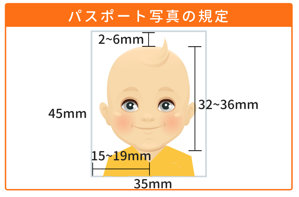 さらに以下の図のような詳細な決まりもあるため、写真が不可となってパスポート申請ができないことも起こり得ます。次では、赤ちゃんのパスポート写真を上手く撮る方法を紹介します。