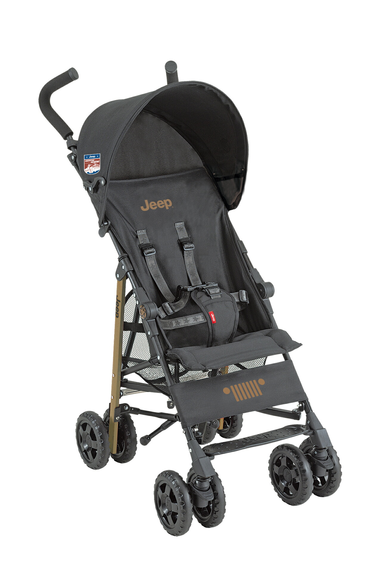 オフロードを走り抜けるJeep車のように、未舗装の道路でも安定して走行できることを目指してつくられたのが 「J is for Jeep アドベンチャー」です。クラス最大級のタイヤを装備し、前輪には下左右に対応して路面をとらえる3Dソフトサスペンションを備えました。直進走行に固定できるロックも付いて、悪路や踏切などでタイヤがとられにくい仕様になっています。