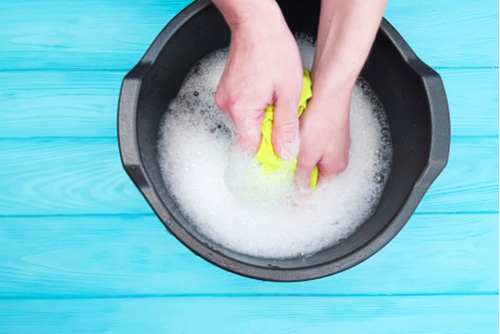 つけ置きが終わったら、20~30回程度やさしく手のひらで押し洗いしましょう。汚れが気になる部分は、つかみ洗いをして汚れを落とします。