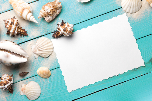 無地の紙に水色の紙を重ね貼りをすることで、海をイメージさせた手作りの暑中見舞いカードがつくれます。夏らしさを感じさせる立体感のあるシールを貼れば、ぐっとおしゃれで凝った印象にすることができるでしょう。シールは子どもに渡して、好きなようにペタペタと貼ってもらえば、一緒にカード作りが楽しめて良いですね。