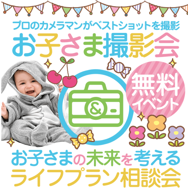 撮影会では、お子さまの未来を考えるライフプラン相談会も同時に開催。「教育費はどのくらい必要?」「学資保険は何を選べばいいの?」など、知りたいけれどなかなか聞けない、お子さまにかかるお金のことをファイナンシャルプランナーに気軽に相談できますよ。