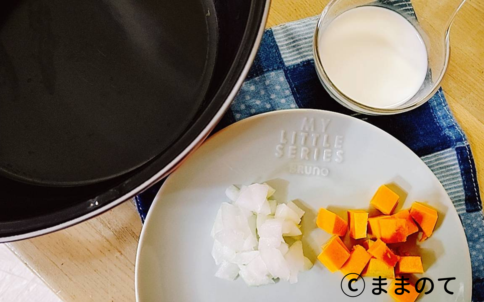 1.かぼちゃと玉ねぎをやわらかくなるまでゆでる